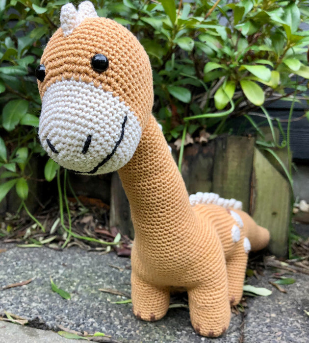 With this crochet pattern you will crochet an hugasaurus that is about 50cm high, but of course the actual height may vary depending on your crochet style and crochet hook.
