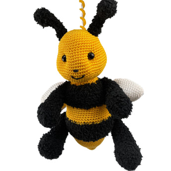Dizzy the Bee is great fun for young and old. You can crochet her as a cuddly toy, but also as a dangling bee with a rattle as a maternity gift or for your little one, of course!