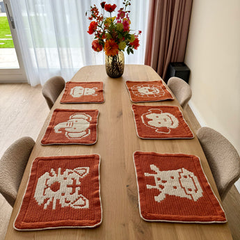 Add a touch of safari fun to your table with six playful placemats: tiger, lion, giraffe, hippopotamus, monkey, and elephant. Perfect for cozy family meals or when the grandchildren come to visit.