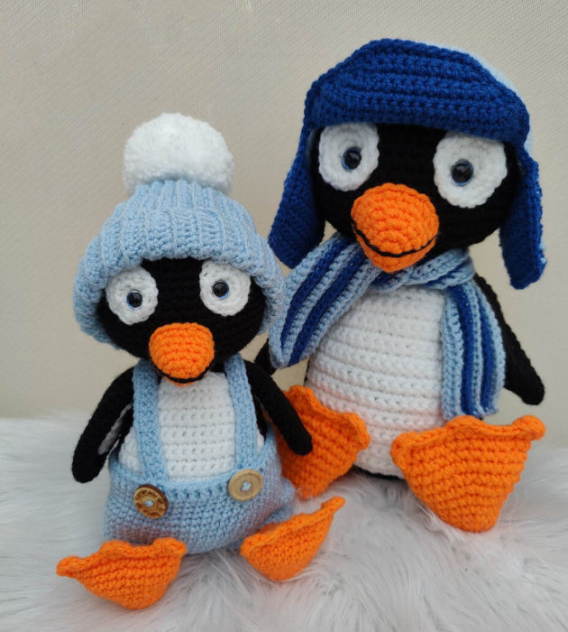 Polle & Pelle, BFFs forever. These penguins were the stars of our most successful CAL to date. Polle is the giant penguin, and Pelle is the little one. Both are described in the pattern with their accompanying clothing that keeps them nice and warm. You can make both or choose one with thick and thin yarn (sometimes with an adjustment).