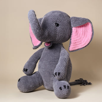 With this crochet pattern, you will crochet an elephant that is about 25cm high if you use cotton yarn. If you decide to use velvet yarn you will make an elephant that is about 38cm high! Of course the actual height may vary depending on your crochet style and hook.