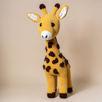 Because of high demand you can now order the crochet kit for Gigi the Giraffe. With this crochet kit you will get all the yarn you need to create a giraffe that is about 45cm high. The giraffe is made with soft velvet yarn and is sure to be a favorite cuddle companion.