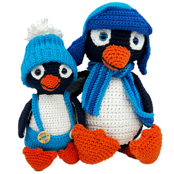 Polle & Pelle, BFFs forever. These penguins were the stars of our most successful CAL to date. Polle is the giant penguin, and Pelle is the little one. Both are described in the pattern with their accompanying clothing that keeps them nice and warm. You can make both or choose one with thick and thin yarn (sometimes with an adjustment).