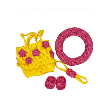 Our model mouse, Enzo, shows off a lovely summer outfit that every mouse would dare to wear to the beach. The total package consists of a crochet pattern for: