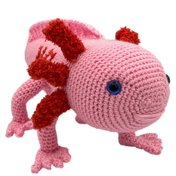 With this crochet pattern you will crochet the unusual and fascinating creature named axolotl. It is a mix between a salamander and a fish, but it is actually a salamander that stays underwater. It is a popular exotic creature to keep in an aquarium at home, our Benji the Axolotl is made in a pink color, what color will you make him in?