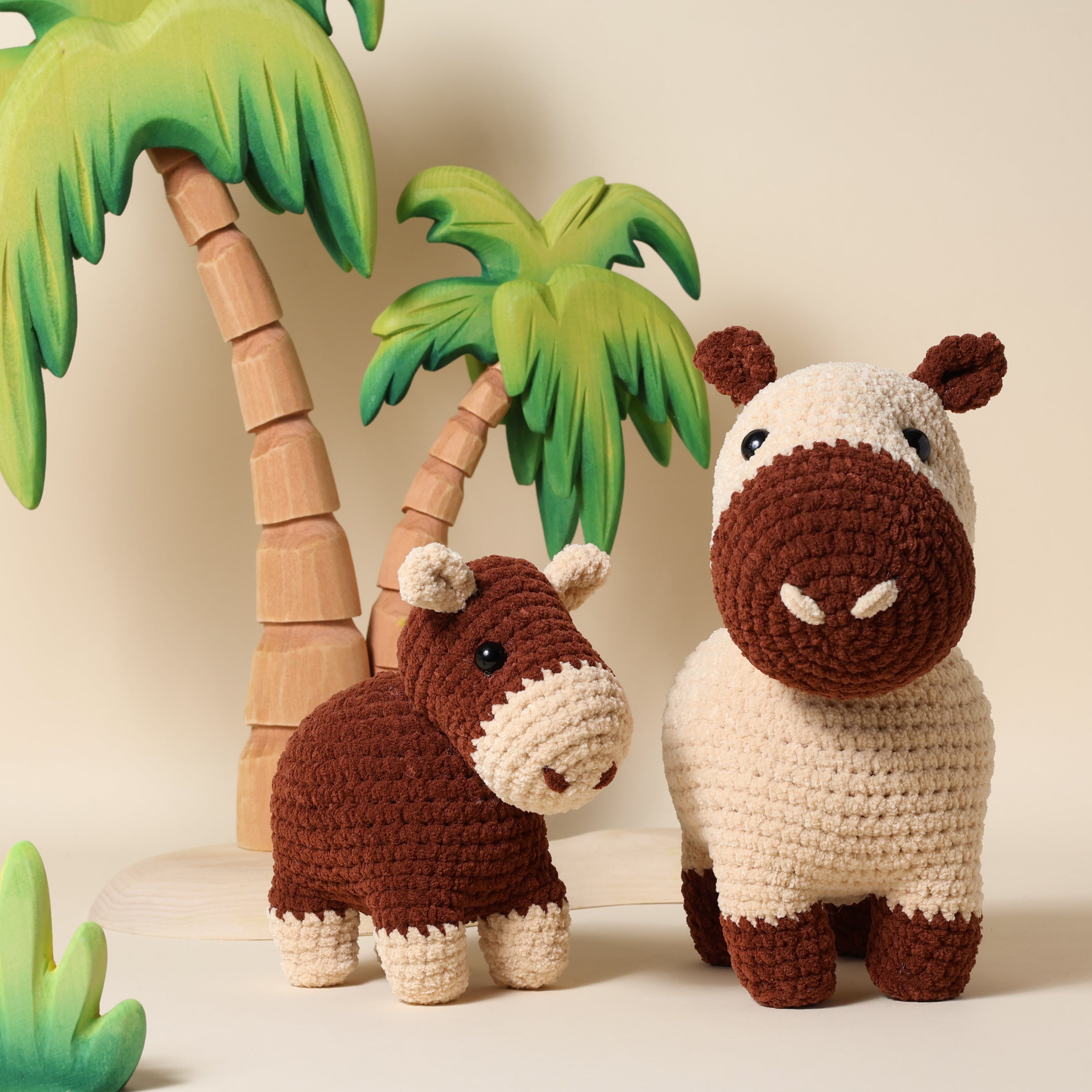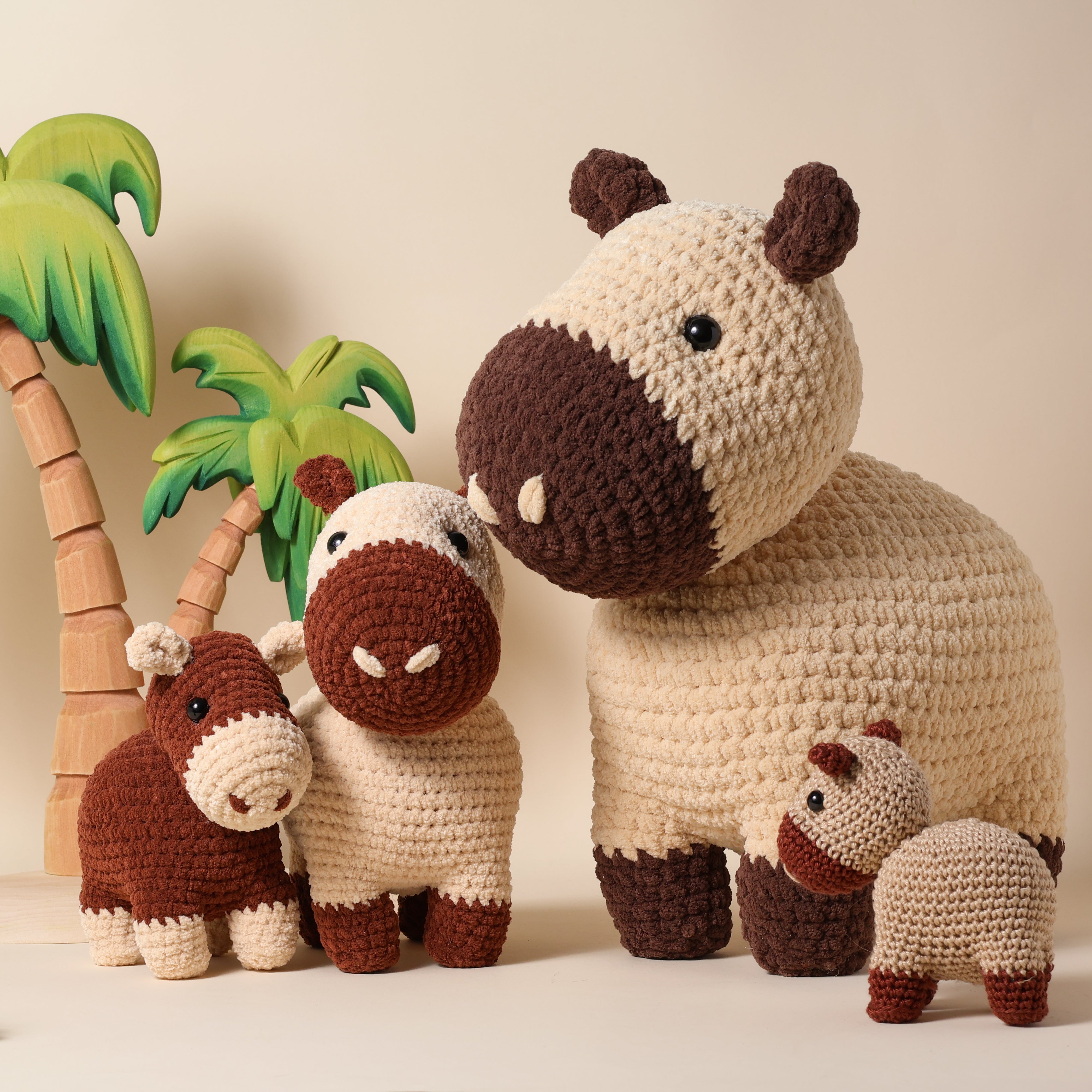 Capybaras sind echte soziale Tiere, was es besonders spaßig macht, eine ganze Familie mit Häkelarbeiten zum Leben zu erwecken. Du kannst die Garnstärke, Häkelnadelgröße und Höhe ganz nach deinen Vorlieben wählen. So kannst du das Muster an deinen eigenen Stil und deine Materialien anpassen.