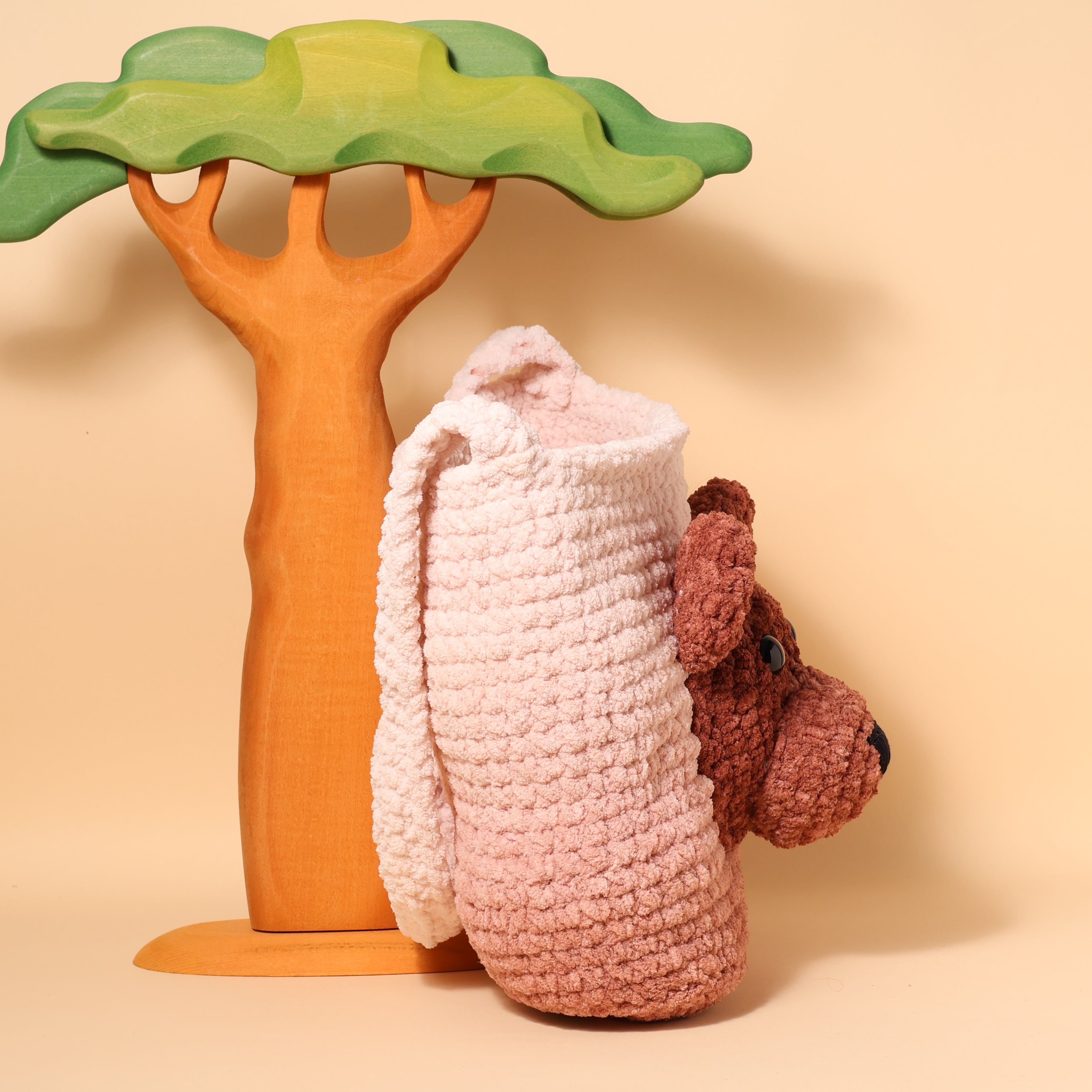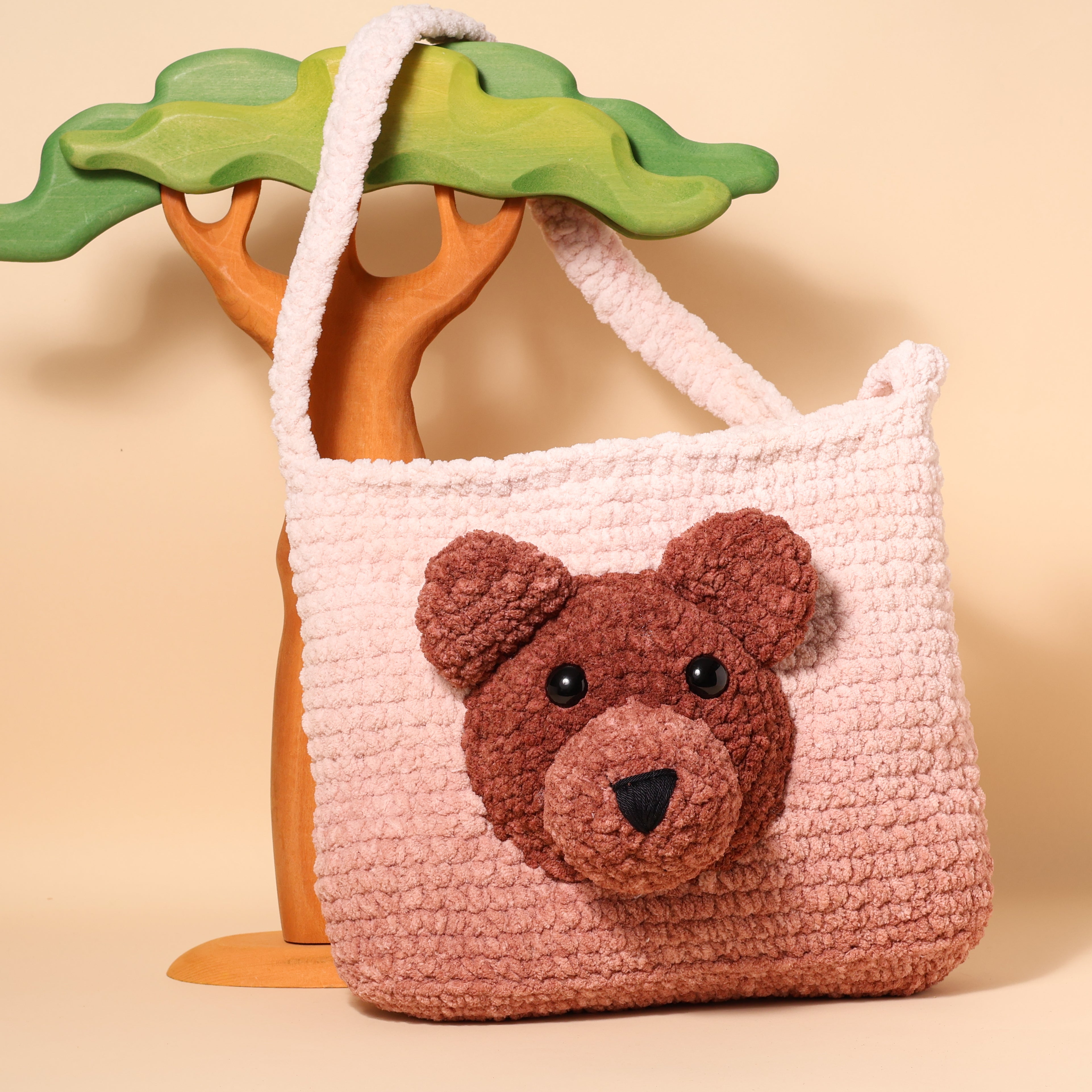 With Scheepjes Big Darling Monochrome Cake and this pattern you will crochet a soft handy Tote Bag with a bear in the front featuring a natural color gradient.